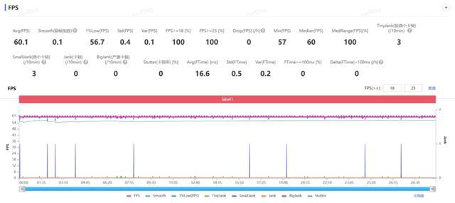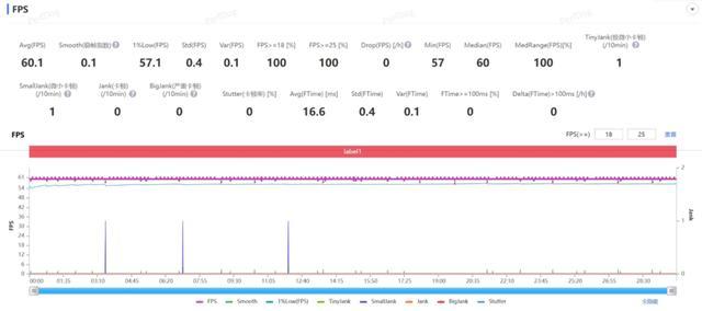 然后即是经典阵势,原神全高画质 30 分钟须弥城跑图,不开插帧的情况下,和之前广阔版 Mate 80 Pro Max 的平均 59.7 帧略好小数,平均帧率来到了 60.1,险些即是一条直线了。